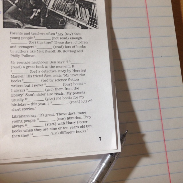2. Don't read, 3. Is, 4. Are reading, 5. Am reading, 6. Is. 7. Are, 8. Buy, 9. Get, 10. Give, 11. Am reading, 12. Are using. 13. Start, 14. Try.