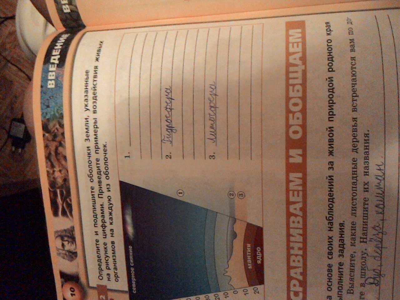 Определите и Подпишите оболочки Земли указаны на рисунке цифрами Приведите примеры воздействия живых организмов на каждой из оболочек