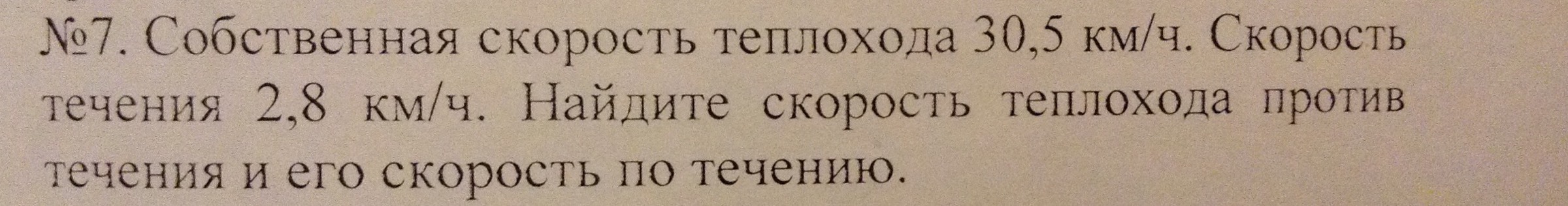 1) 30,5 - 2,8 = 27,7 (км/ч.) - скорость теплохода против течения.
