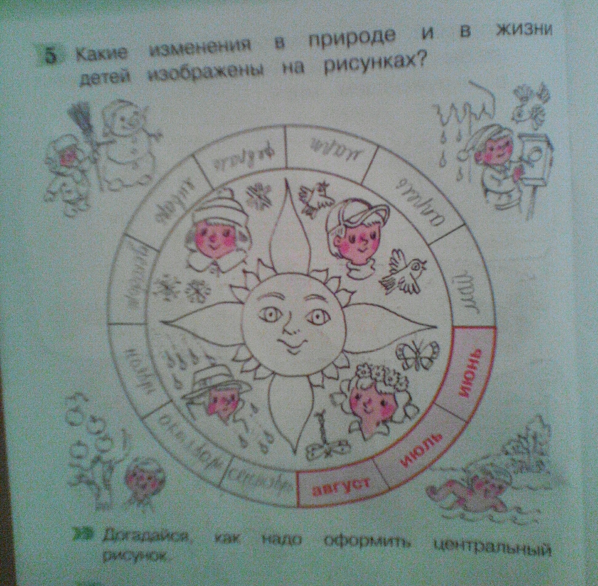 какие изменения в природе и в жизни детей изображены на рисунках.как надо оформить центральный рисунок?