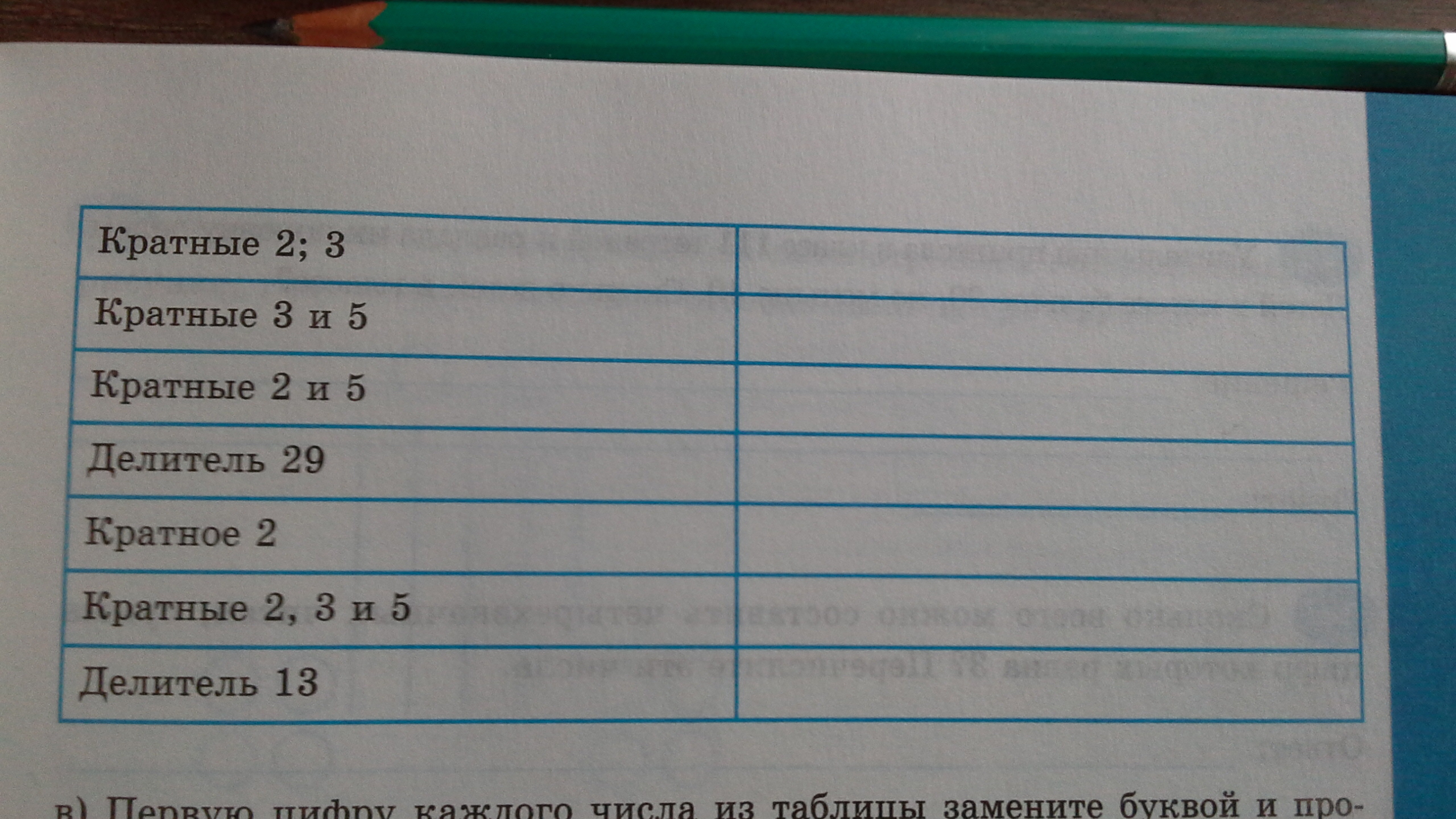 запишите найденные ответы в таблицу учитывая свойства этих чисел