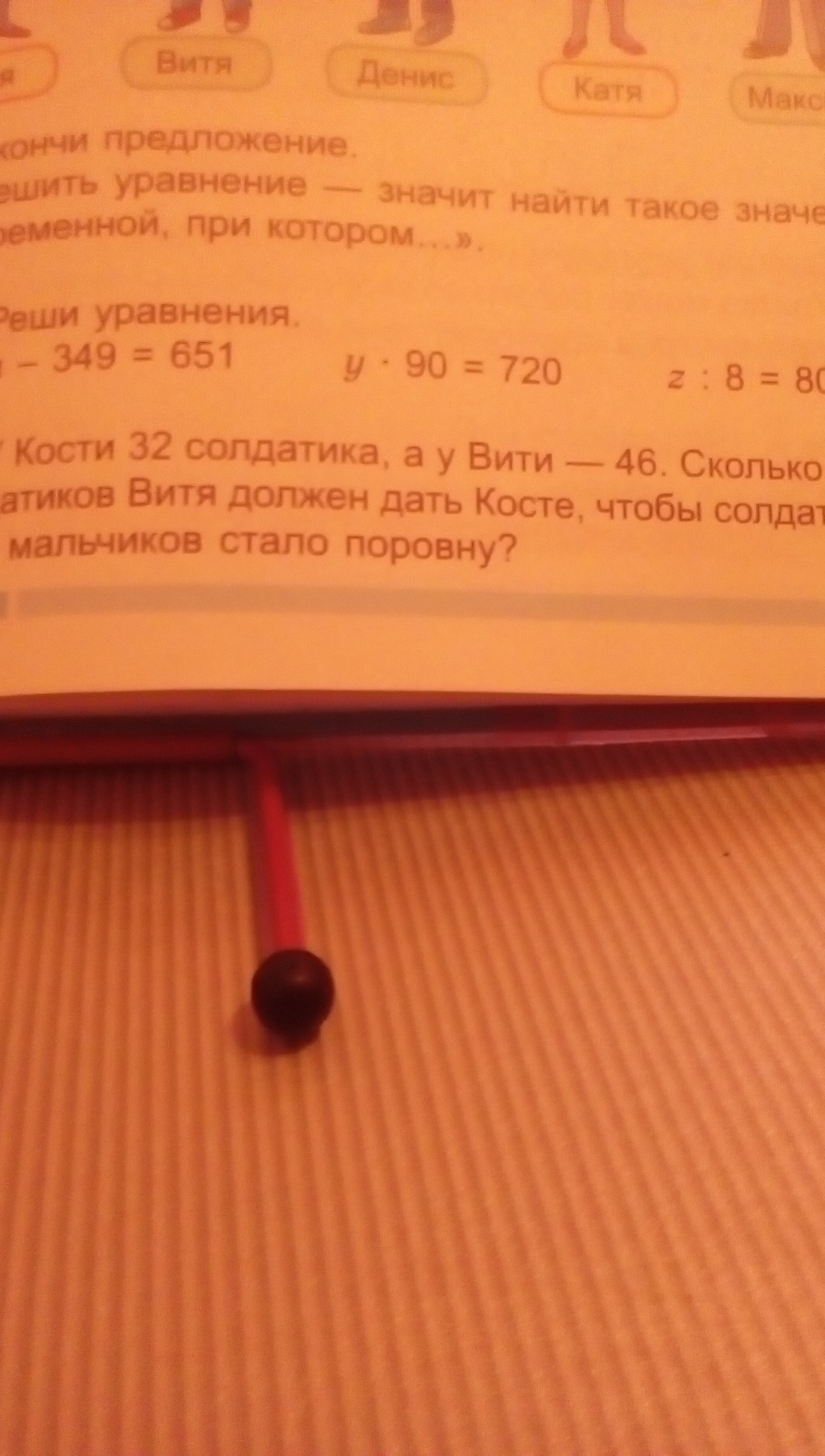 Ответ:7 солдатиков Витя должен отдать Косте.