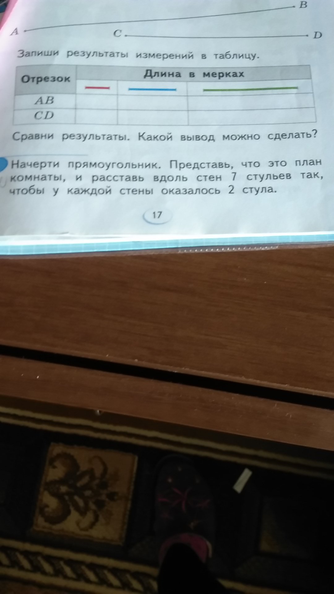 раставь 2 стены по два стула. но не на углах.и остальные три стула получается распредели по стулу на стену и третий в точку прикосновения стен