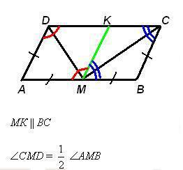 в параллелограмме авсд вс:ав=1:2.середина м стороны автсоединена отрезками с вершинами с и д докажите,что угол смд равен 90°