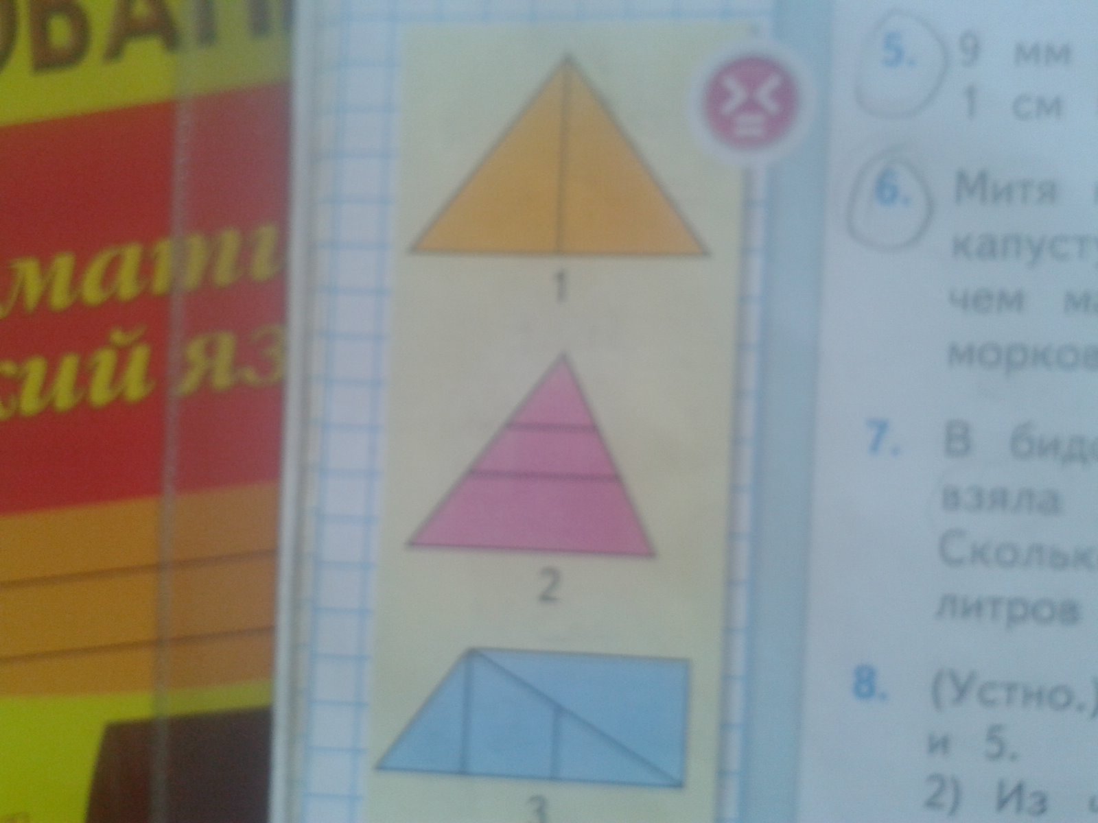 2)3 треугольника, 3 четырёхугольника;
