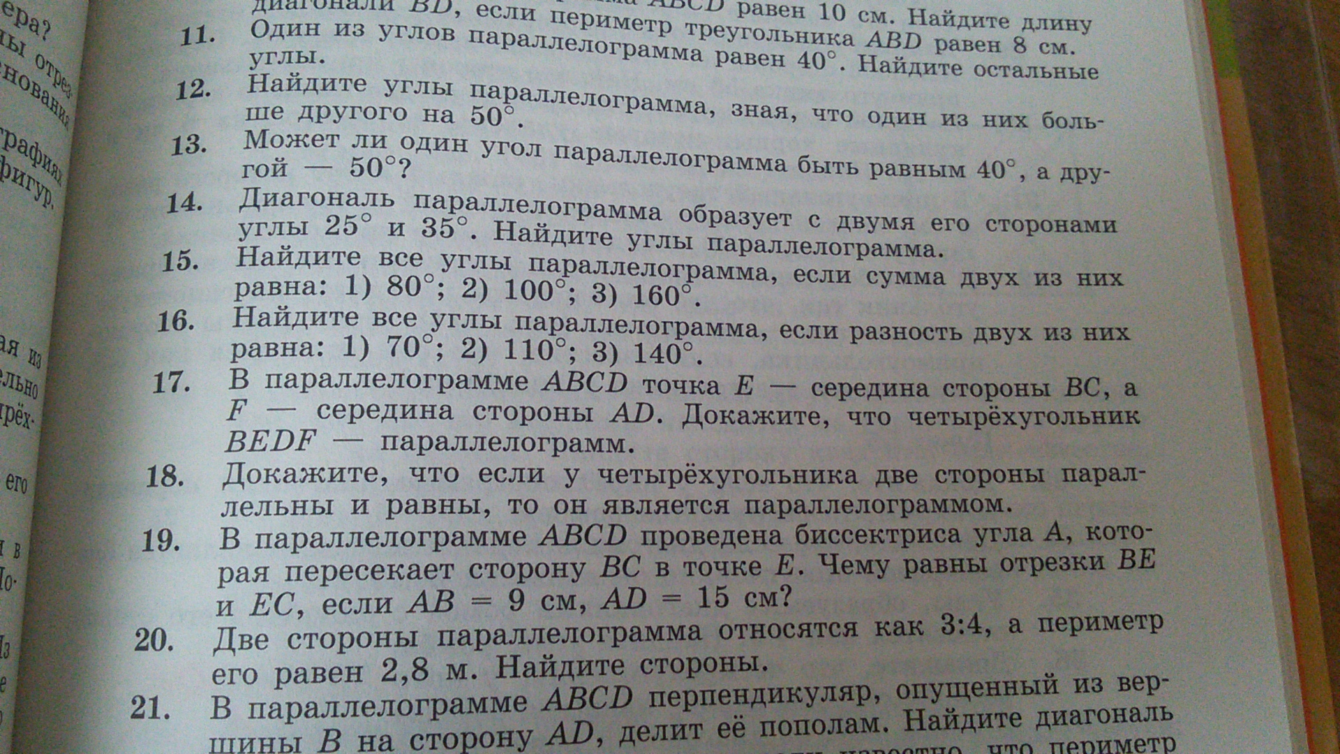 В параллелограмме ABCD точка E середина стороны BC,a F середина стороны AD. Докажите что четырехугольник BEDF параллелограмм