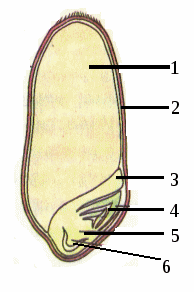 1)эндосперм 2)кожура 3)семядоля 4)почечка 5)стебелек 6)корешок
