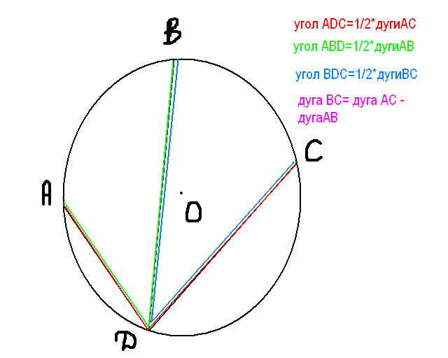 найти угол СDВ, если вписанные углы ADB и ADC опираются на дуги окружности градусные величины которых = соответственно 128 и 48 градусов