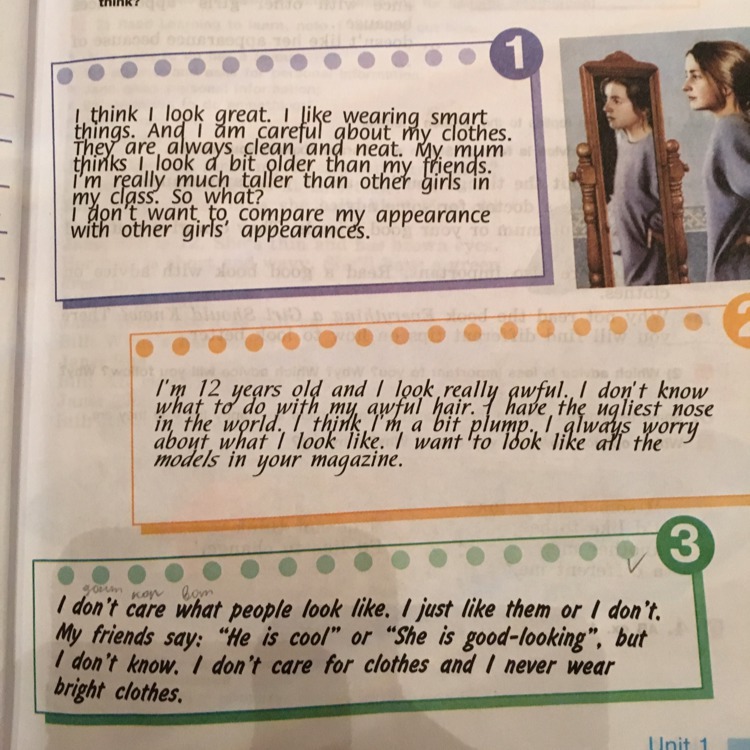 Мне 12 лет, и я выгляжу ужасно. Я не знаю что делать с моими ужасными волосами. У меня самый уродливый нос во всем мире. Я немного пухлая. Я всегда беспокоюсь о том, как я выгляжу. Я хочу выглядеть как модели в журналах.