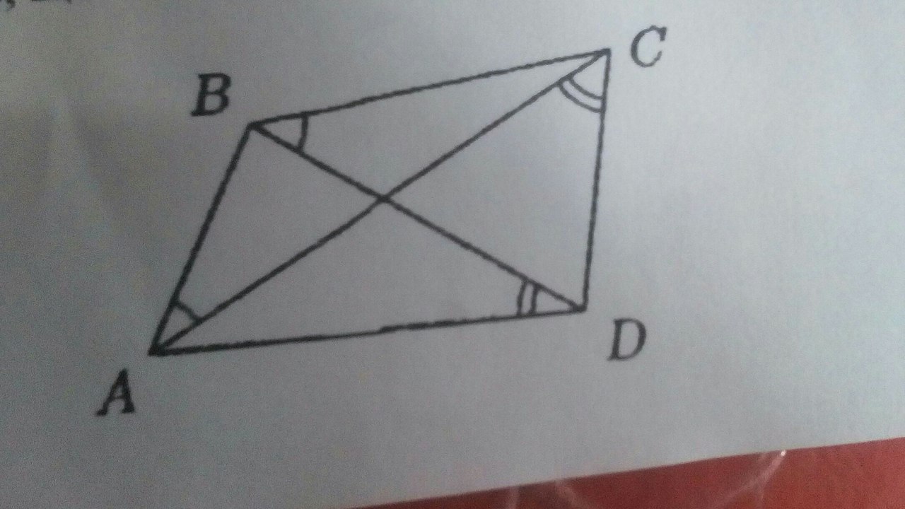 ПОМОГИТЕ! ABCD - выпуклый четырёхугольник. Известно, что ∠CBD = ∠CAB и ∠ACD = ∠BDA. Докажите, что ∠ABC = ∠ADC.