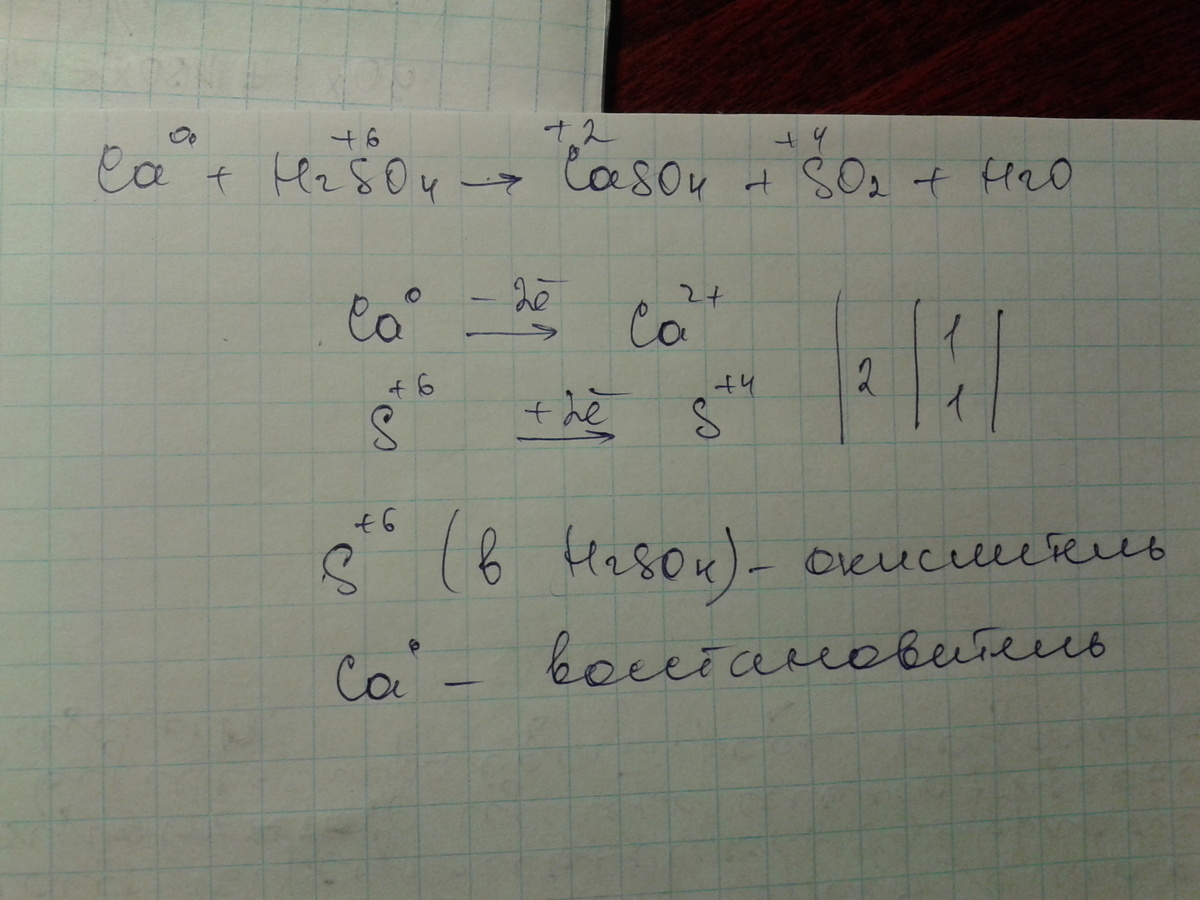 Ca+2H2SO4--->CaSO4+SO2+2H2O