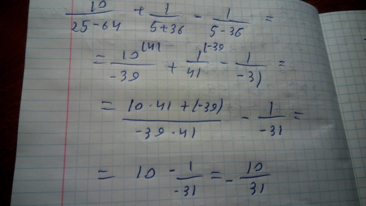 10/25-64 + 1/5+6 в квадрате - 1/5-6 в квадрате