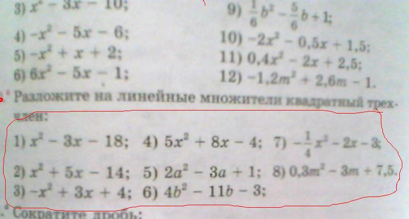 Разложите на линейные множители квадратный трёхчлен. Примеры во вложениях. Заранее спасибо))))))))))**