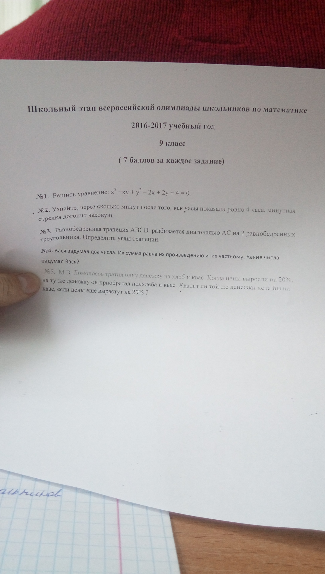 от отметки 4 часа мин стрелка пройдет Х дел, часовая стрелка пройдет (20/12 + Х * 1/12) дел,