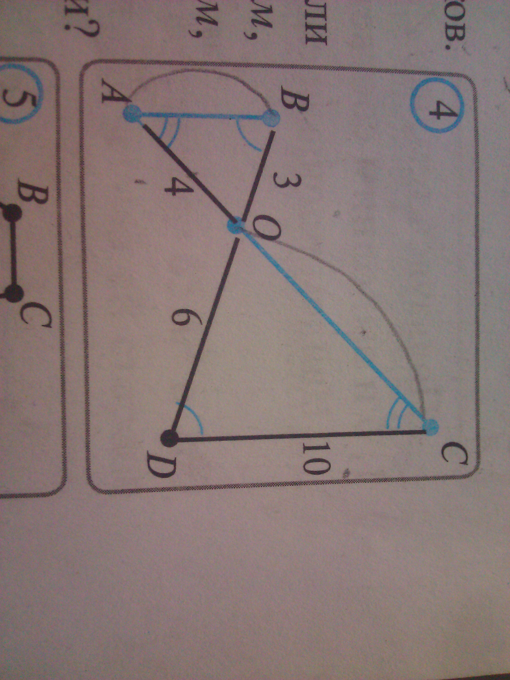 Треугольники ОАВ и ОСД подобны по первому признаку подобия треугольников (Два угла одного треугольника равны двум углам другого треугольника). Стороны, лежащие напротив равных углов – сходные.
