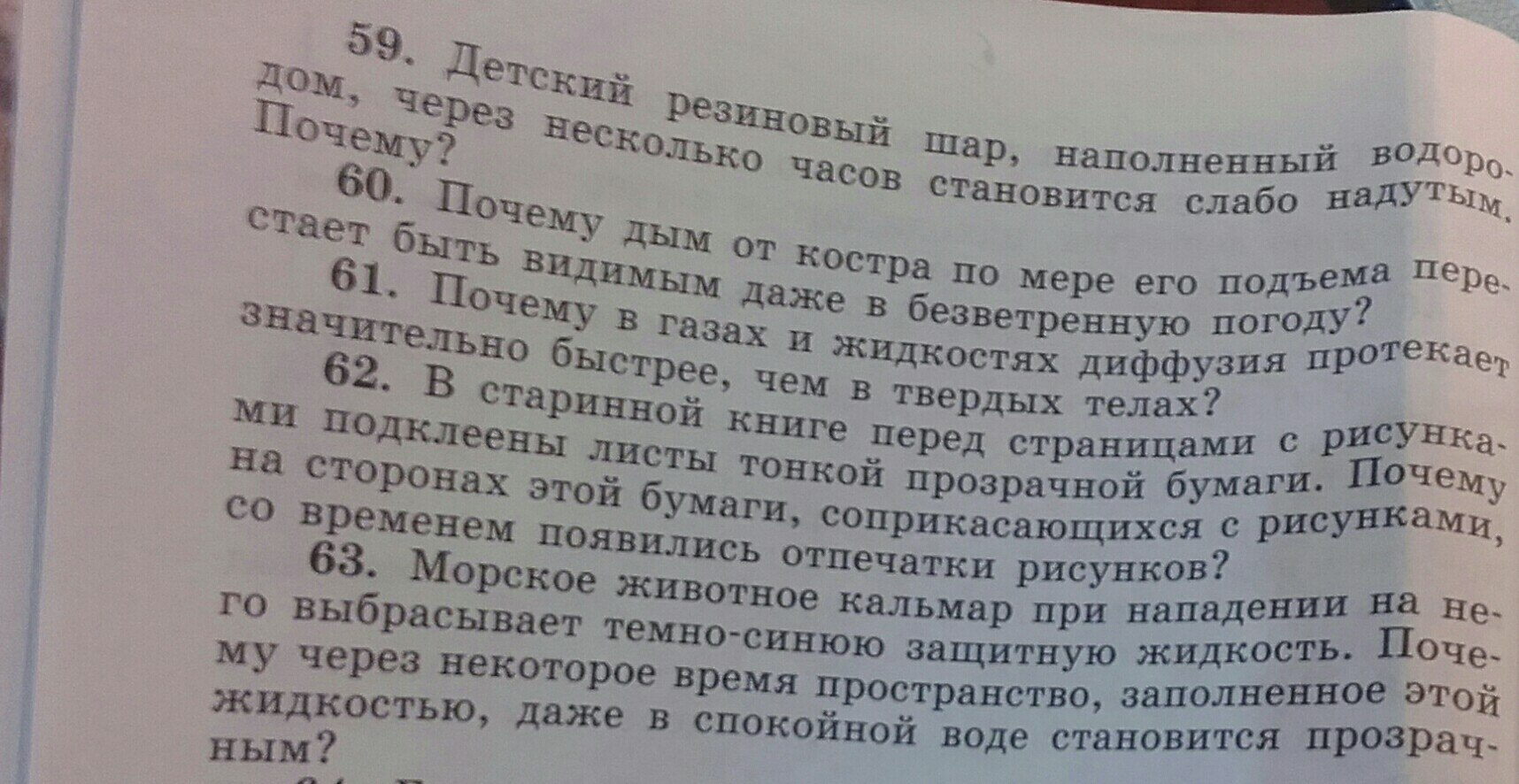 59. Молекула водорода имеет достаточно маленький размер по сравнению с расстоянием между молекулами резины, который позволяет ей со временем проходить через резиновую стенку шара. Способствует этому большее давление водорода внутри шара по сравнению с атмосферным.