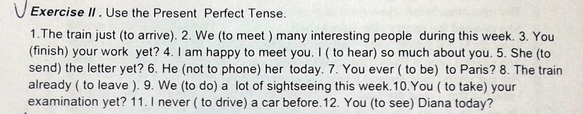 Exercise 2 1.has arrived 2.have met 3.Have you finished 4.have heard