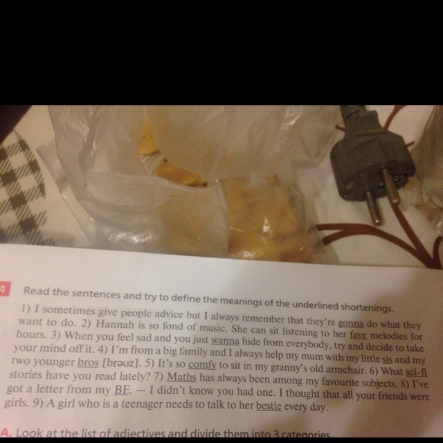 gonna=going to , fave=favourite, wanna=want to, sis=sister, bros=brother, comfy=comfortable, sci-fi =science fiction -фантастика, Maths=mathematics, BF= best friend, bestie = most best friend- самая близкая подруга