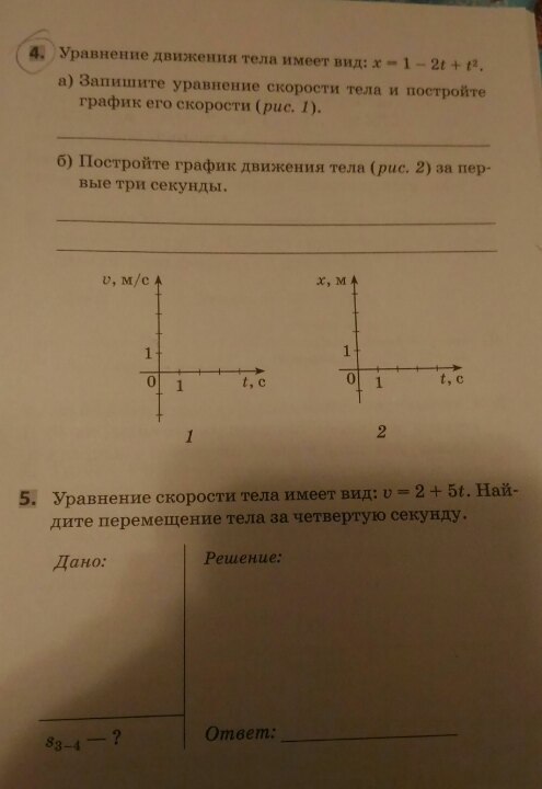 Номер 4: уравнение движения тела имеет вид: х= 1 - 2t +t^2