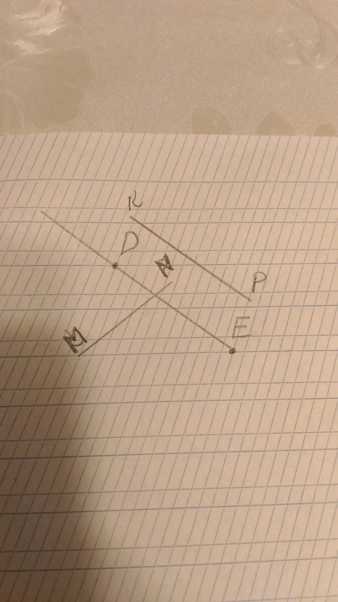 отметь точьки D и E и проведи через них луч ЕD. начерти прямую MN,пересекающую луч ED,и прямую KP, не пересекающую луч ЕD