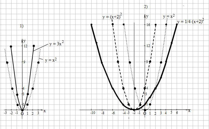 Затем при каждом х увеличиваем ординату точки графика у = х² в 3 раза и через полученные точки проводим параболу.