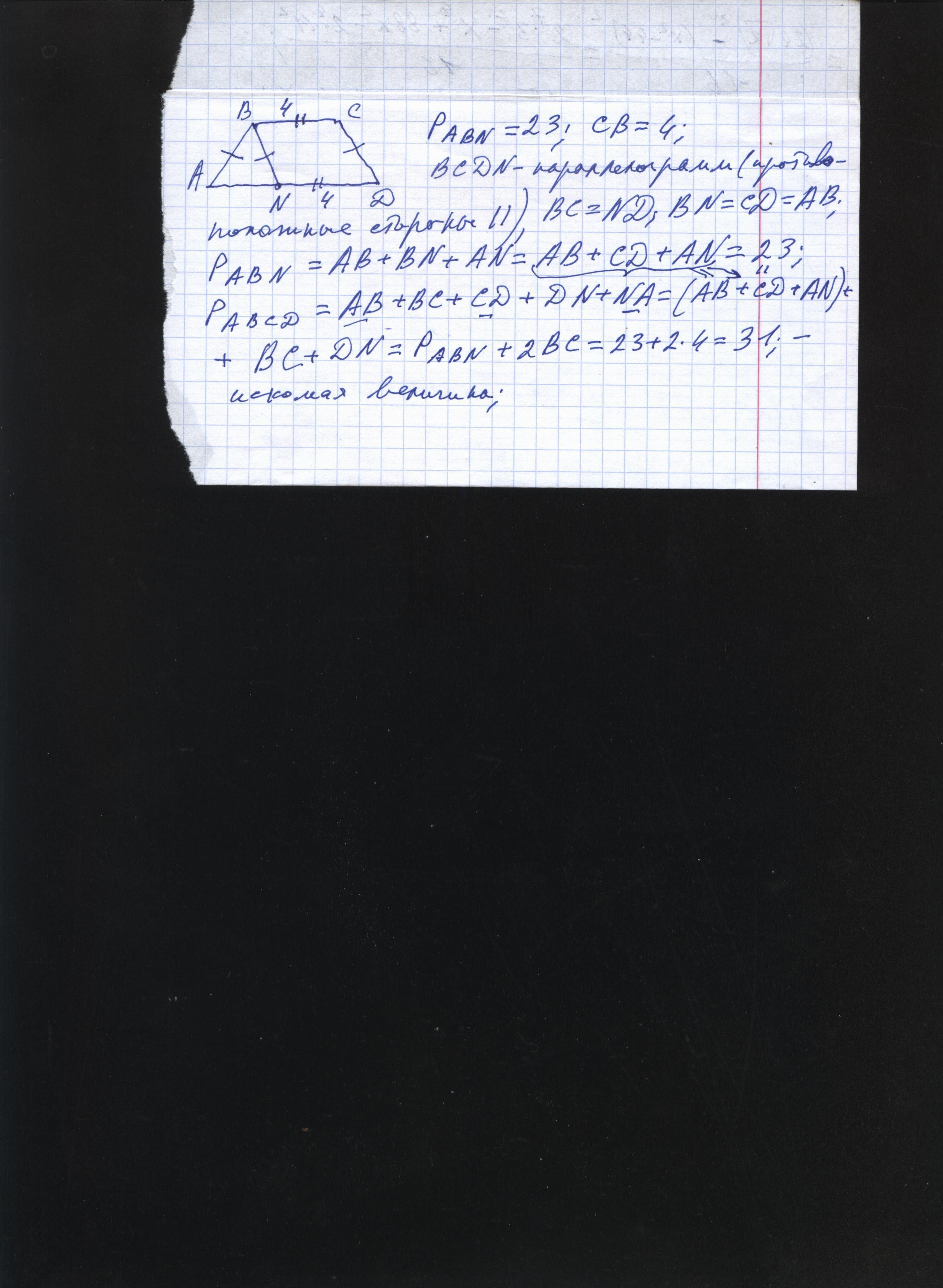 Периметр треугольника ABN равен 23 см,