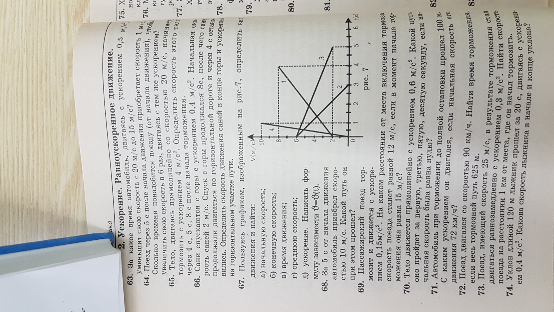 рисунок 7, номер 67. график 3- это тот который идет от 6 м/с до 5 с