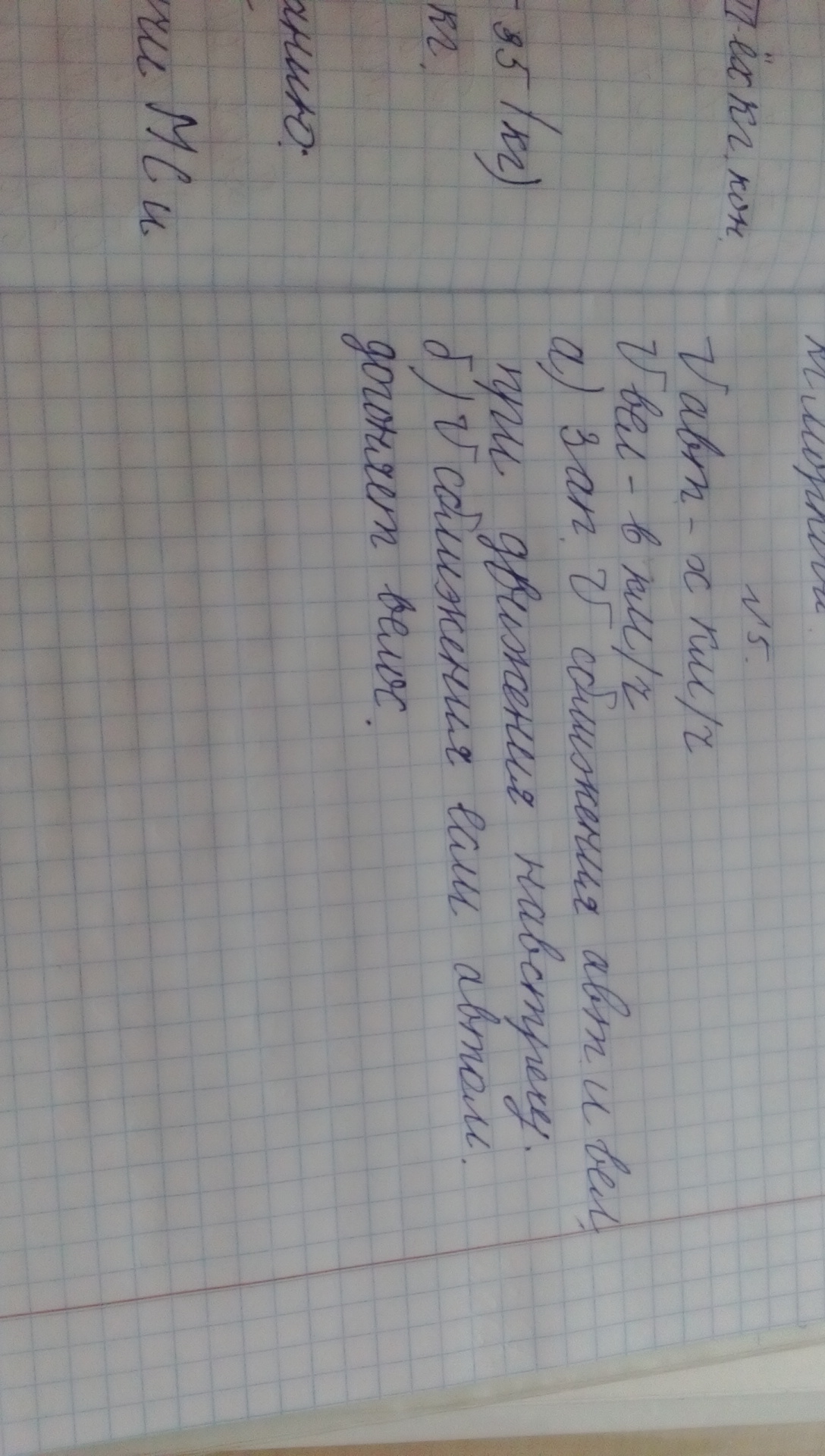 скорость автомобиля из километров в час скорость велосипедиста в километров час Запишите скорость движения автомобиля и велосипедиста при движении навстречу. буквенное выражения