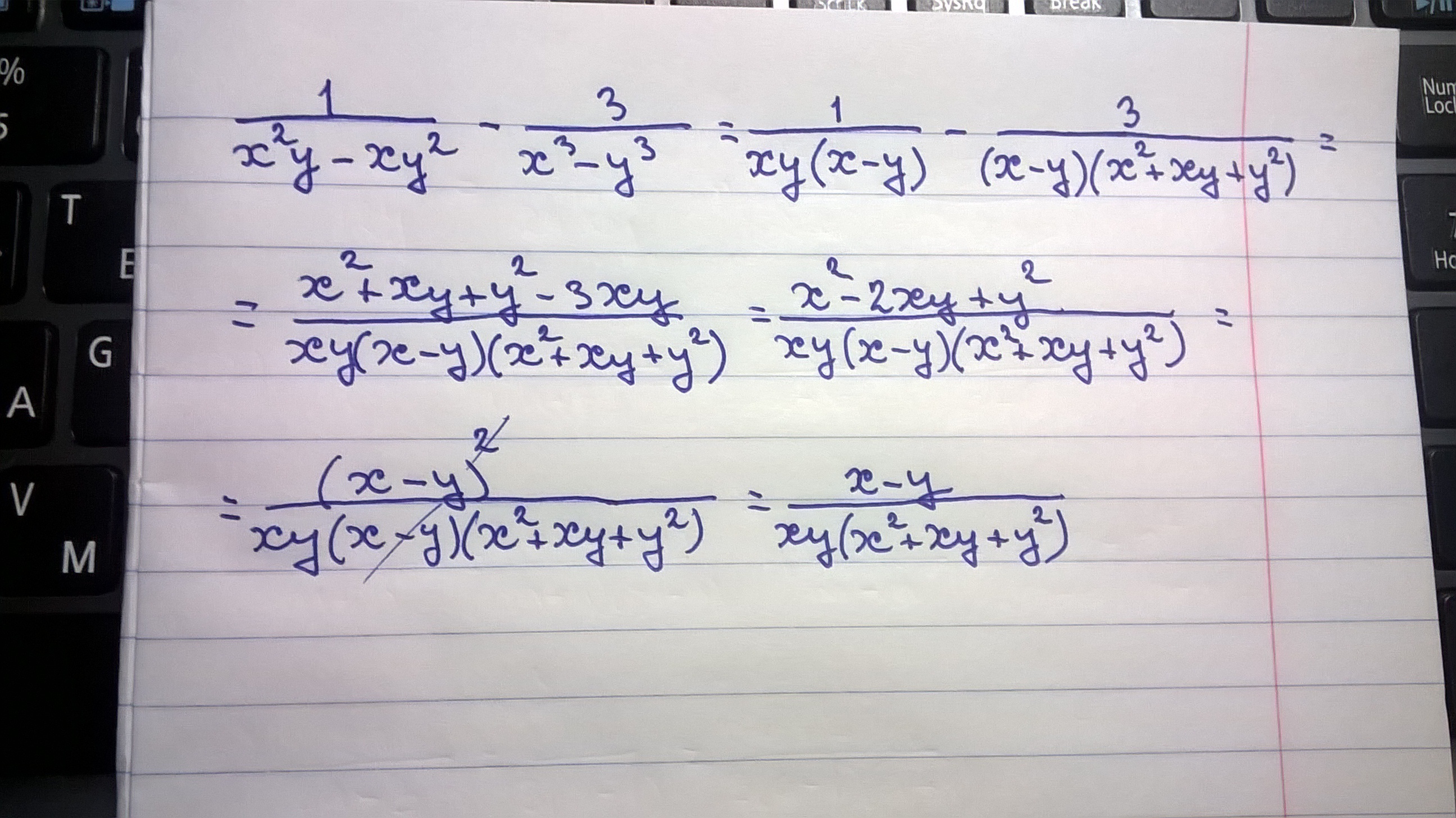 1(x²y-xy²)-3/(x³-y³)=1/(xy(x-y))-3((x-y)(x²+xy+y²))=