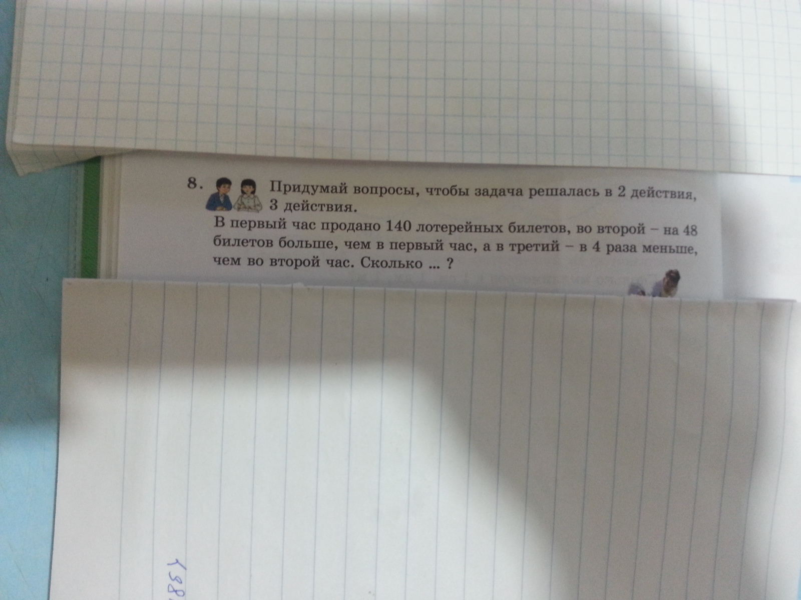 Для того, чтобы задача решалась в два действия, вопрос должен быть таким.