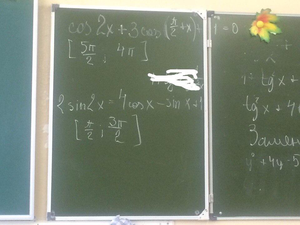 cos2x+3cos(п/2+x)+1=0 [5 п/2; 3п/2]
