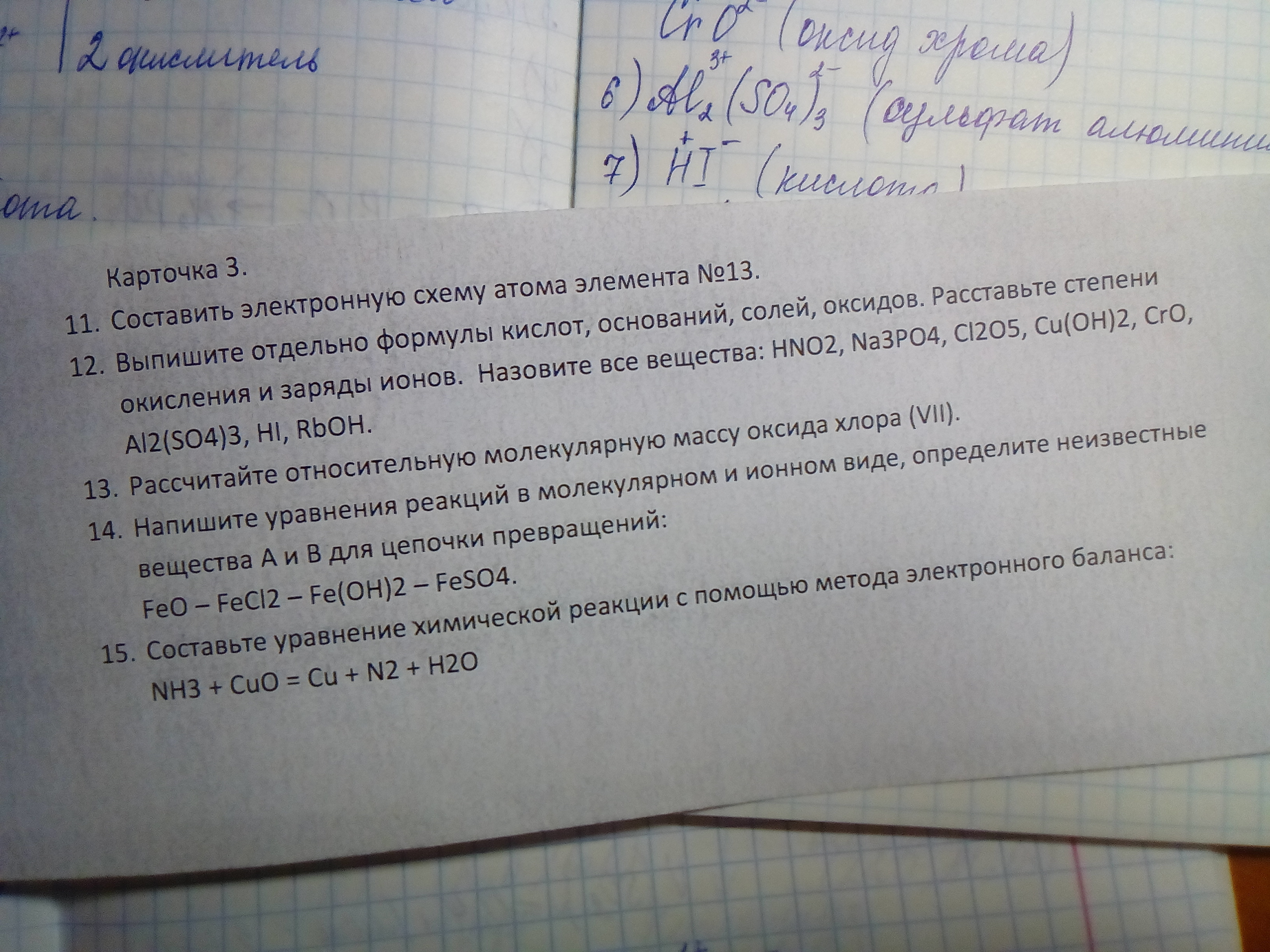 Cu⁺²O⁻²+N⁻³H3 ⇒ N2⁰+ Cu⁰ + H2O