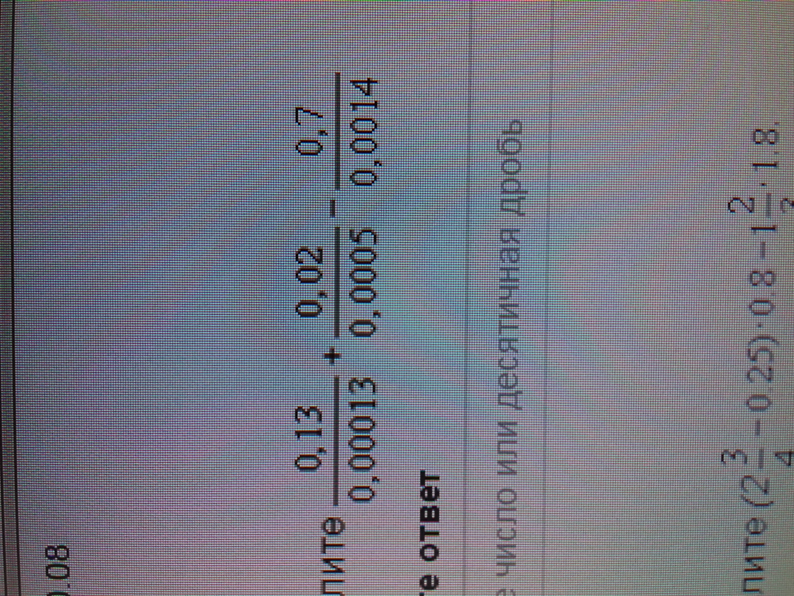 0.13 / 0.00013 + 0.02 / 0.0005 - 0.7 / 0.0014 умножим числитель и знаменатель дробей на 100000 . Получим : 13000/13 + 2000 / 50 - 70000 / 140 = 1000 + 400 - 500 = 900