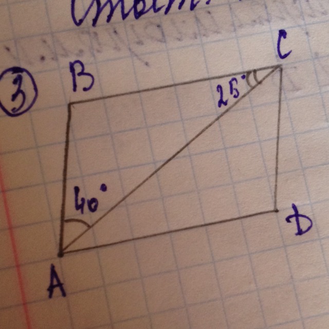 В параллелограмме ∠А=40°+25°=65° его ∠С=∠А=65° как противоположные углы параллелограмма