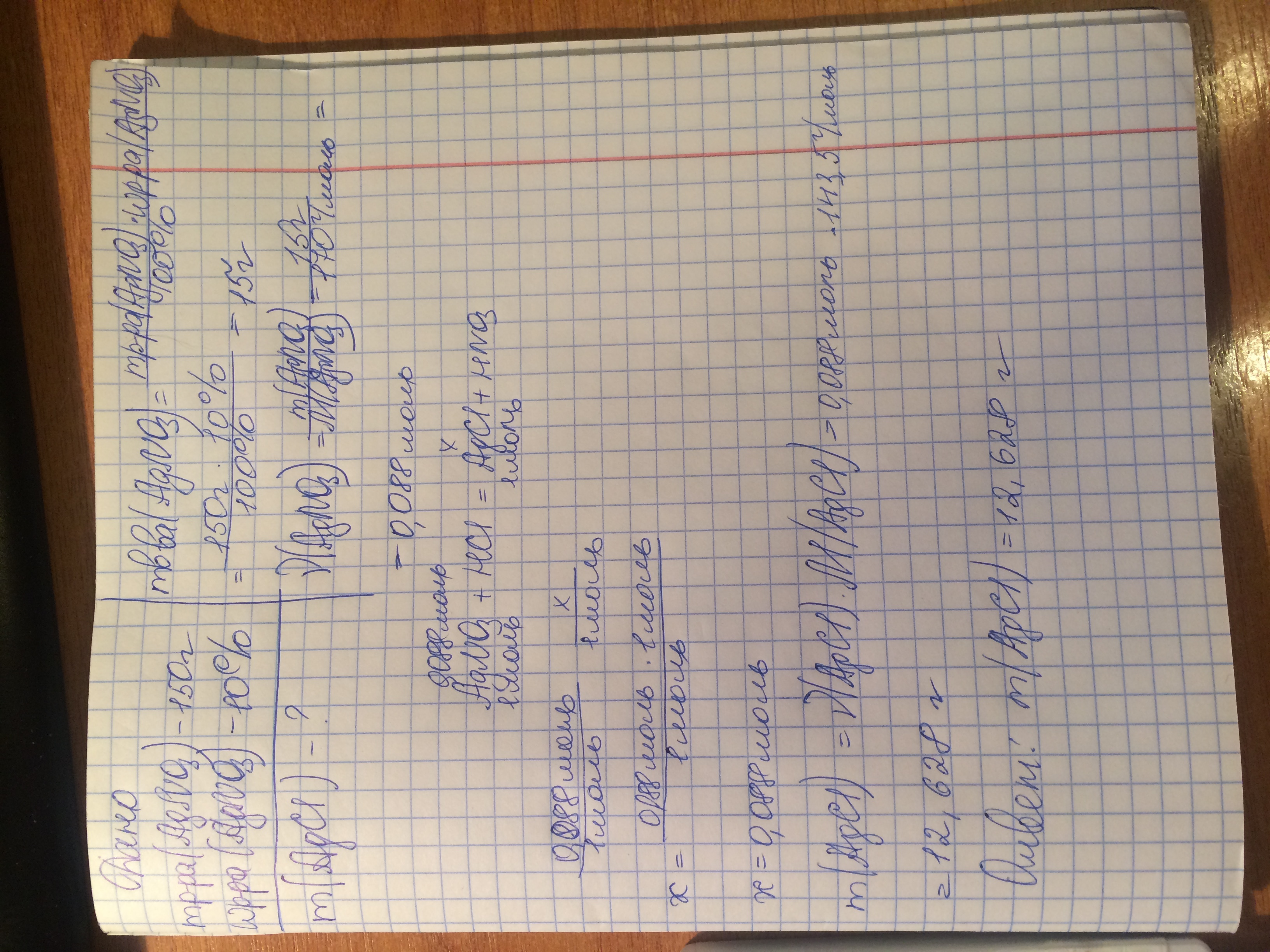 Рассчитайте массу осадка, образовавшегося при сливании раствора нитрата серебра массой 150г 10% - ной концентрации с соляной кислотой. Срочно!