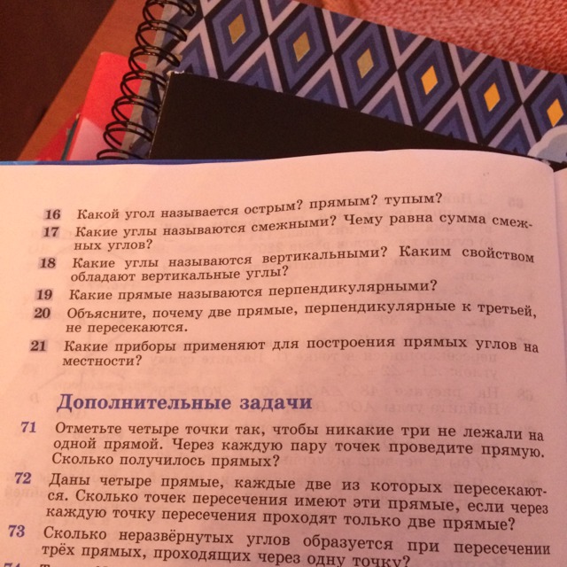 19. Две прямые называются перпендикулярными, если они пересекаются под прямым углом.