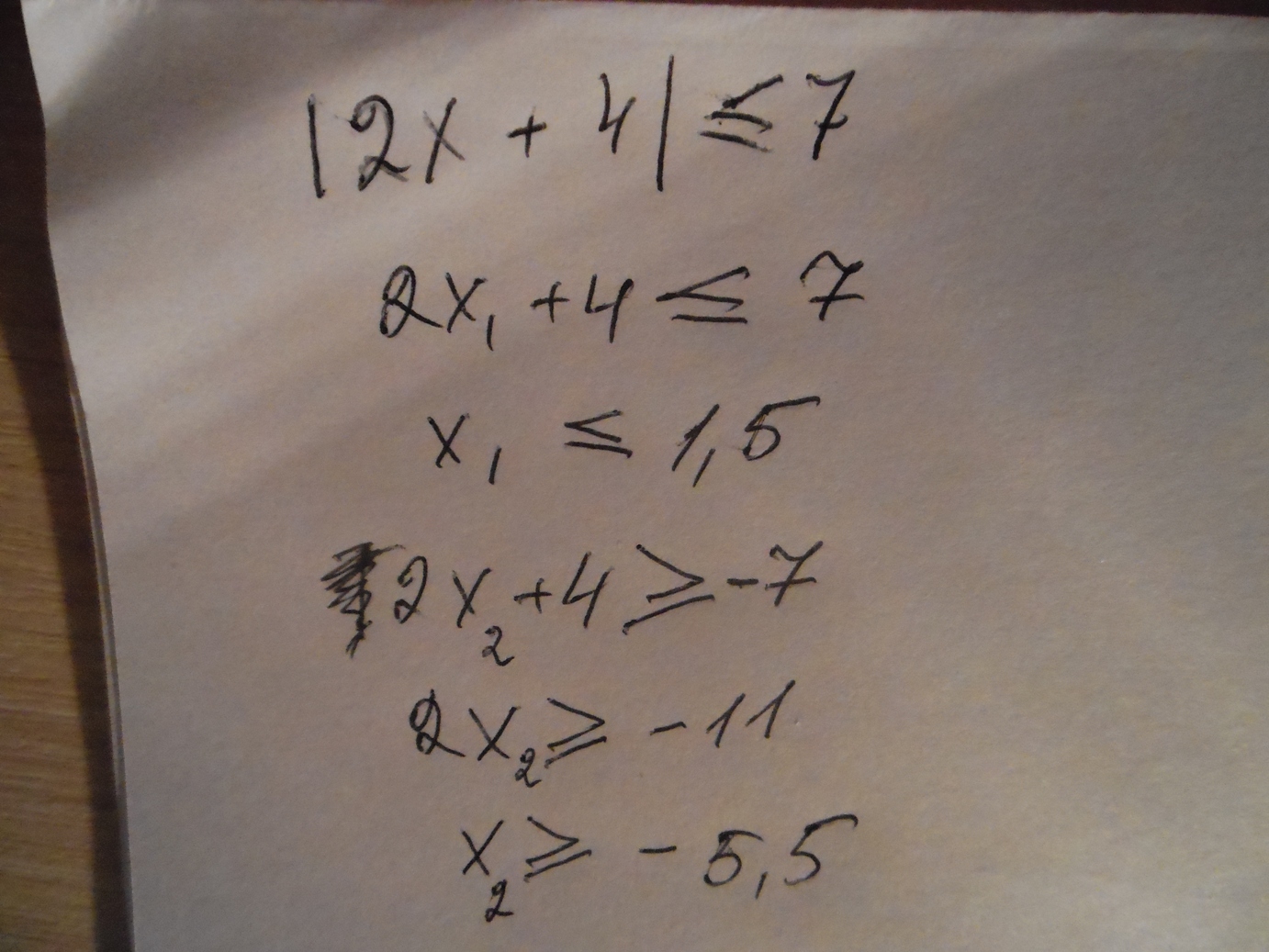 2х+4=<7, 2х+4>=0 и -2х-4=<7, 2х+4<0