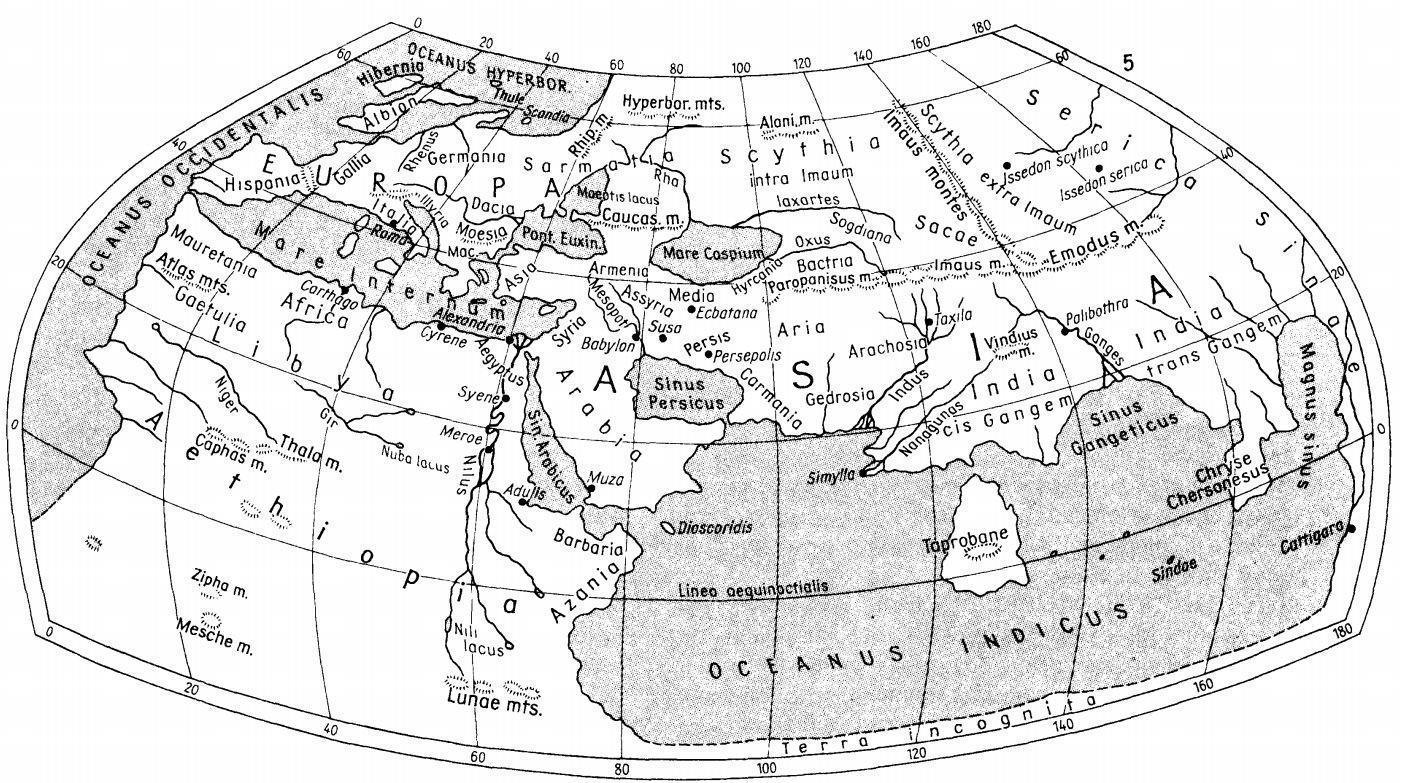 Изображения каких частей суши показаны на карте Птолемея близко к современным ?