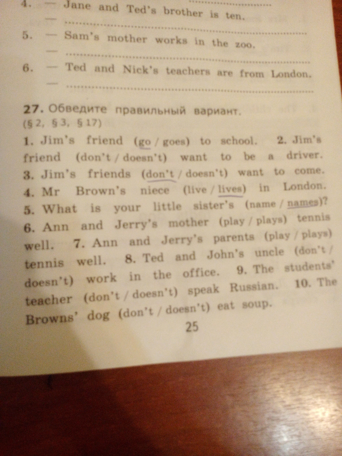 2don't.3doesn't.4live.5names.6plays.7plays.8don't.9don't.10doesn't.