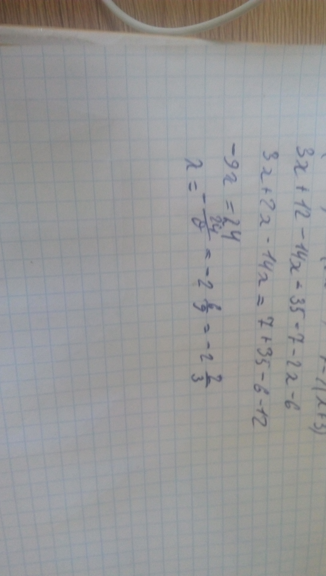 3(X+4)-7(2X+5)=7-2(X+3) ;