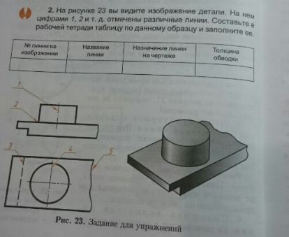На рисунке 23 вы видите изображение детали на нем цифрами 1.2 и т.д отмечены различные линии