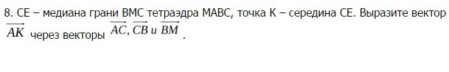 АК=АС+0,5СЕ=АС+0,5(СВ+0,5ВМ)=АС+0,5СВ+0,25ВМ.