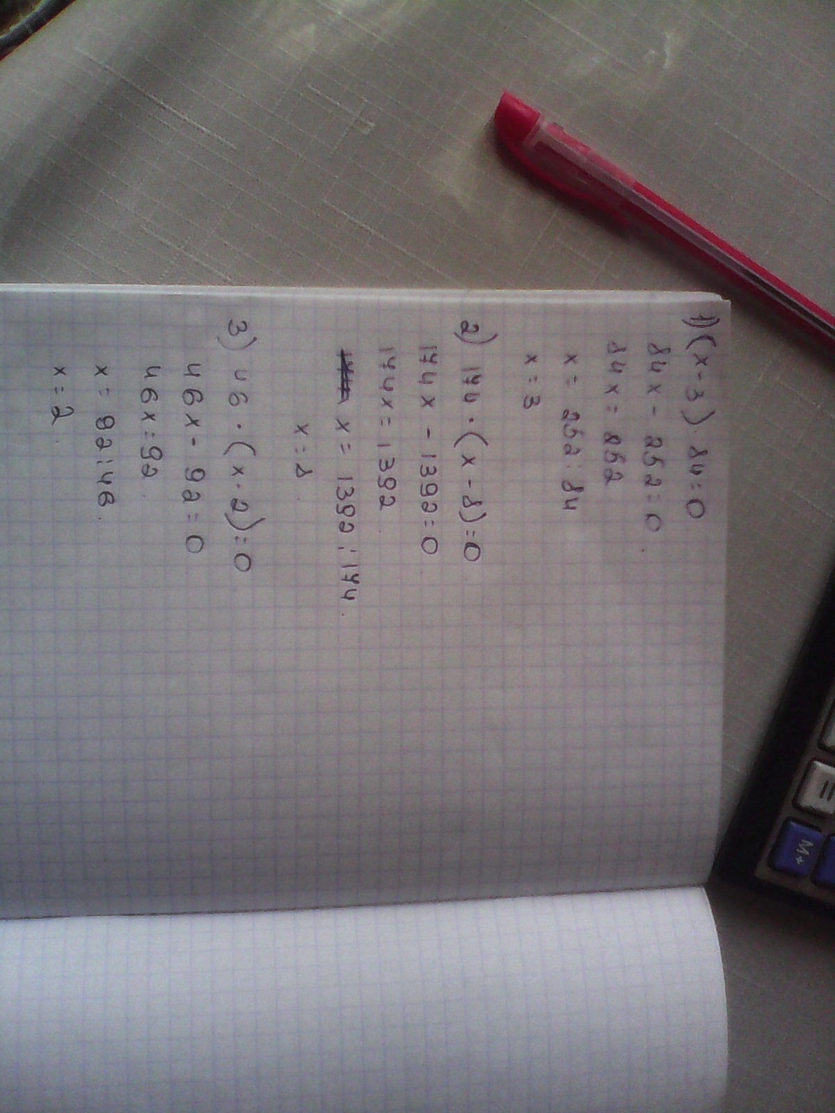 3) 46*(х-2)=0