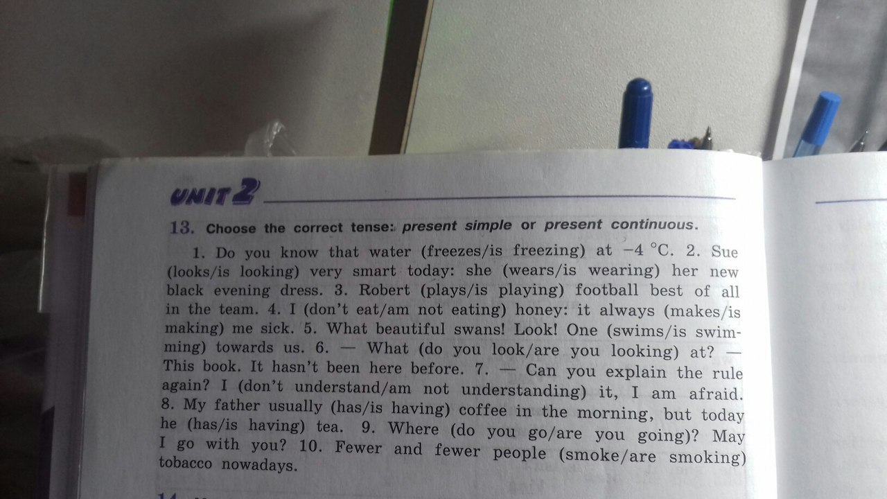 8.My father usually (has/) coffee in the morning but today he (is having) tea.