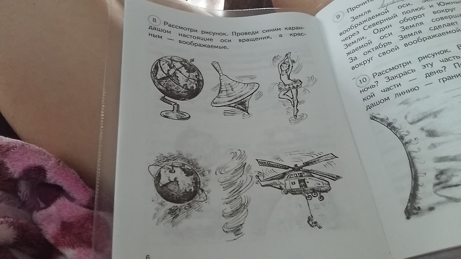 Глобус и Землю обведи красным цветом, остальное - синим