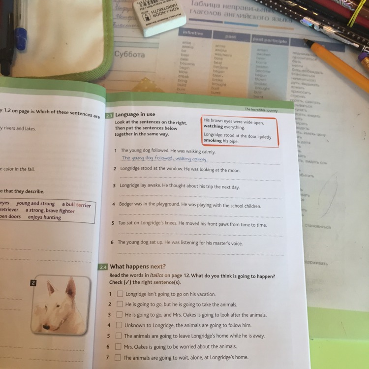 2.3)Просто убираешь He was и переписываешь,ставя перед глаголами запятую