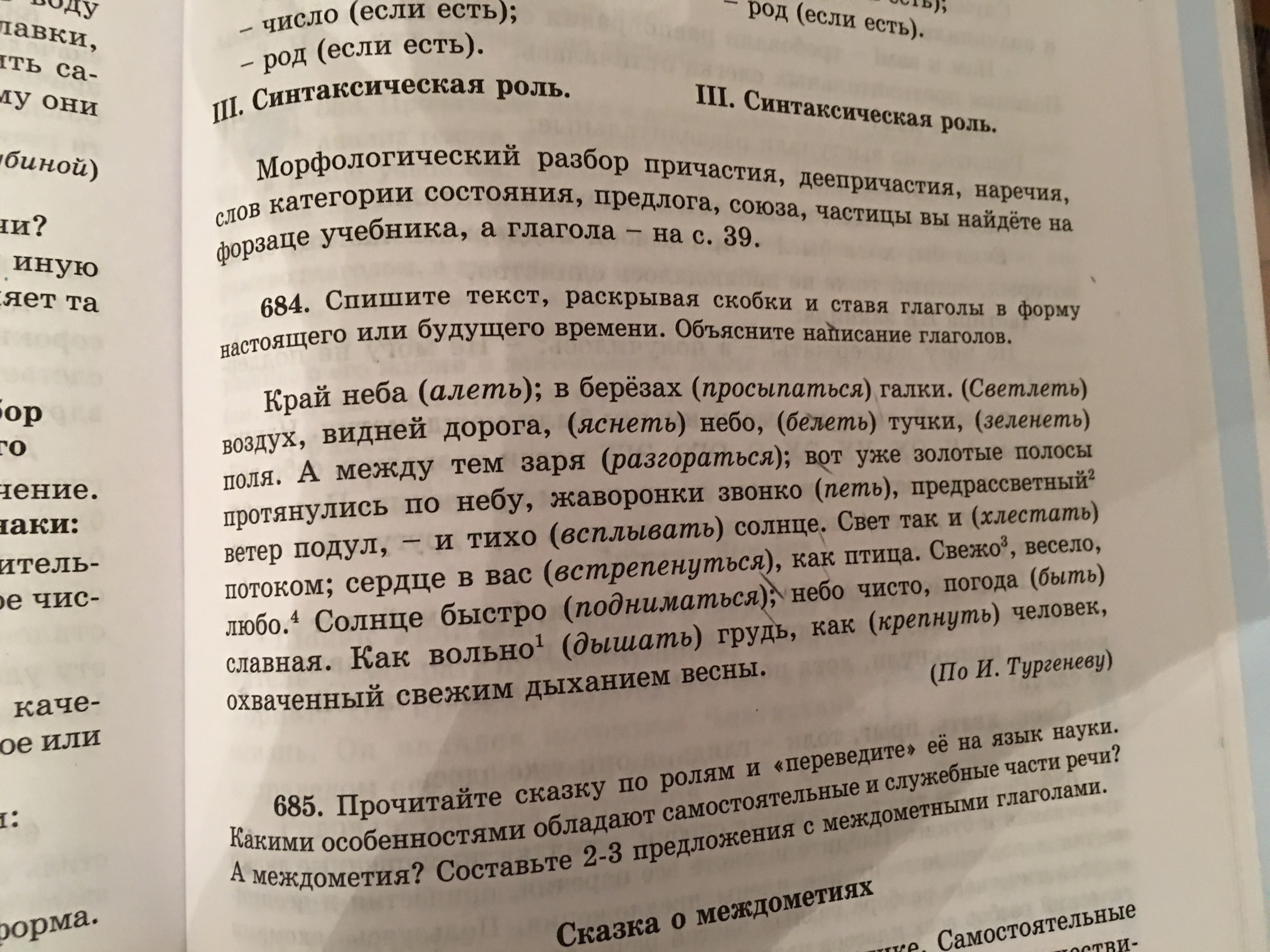 Край неба алеет,в берёзках просыпаются галки.Светлеет воздух ,видней дорога,яснеет небо,белеют тучки,зеленеют поля.А между тем заря разгорается,жаворонки звонко поют,тихо всплывает солнце,хлестает потоком,сердце в вас встрепенулось,быстро поднимается солнце,погода была славная,вольно дышит грудь,как крепнет человек.