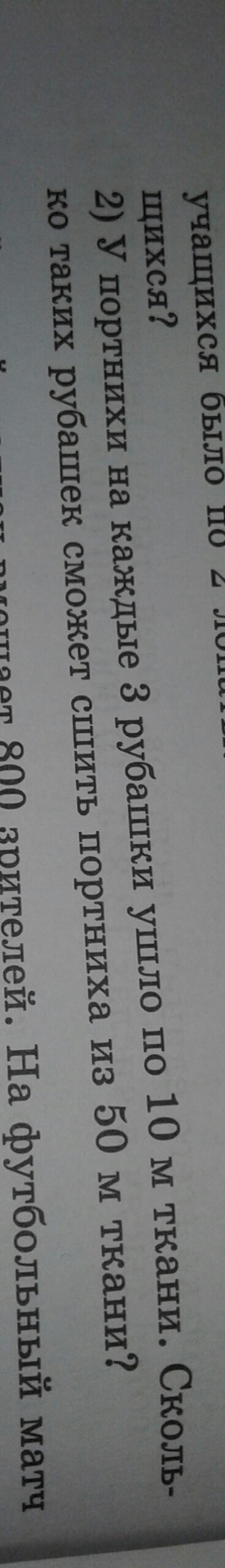 если за 10 метров получается 3 рубашки значит: за 20 метров=6,30=9,40=12,50=15