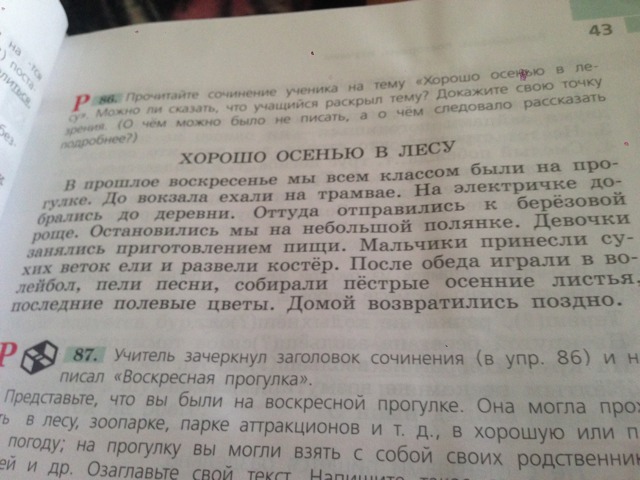 В прошлое воскресение мы с родителями ходили гулять в лес. Как же там хорошо! Свежий воздух, золотые и бардовые деревья, много грибов.. Мы с мамой собирали красивые листья для гербария, а папа собирал грибы. На прогулке нам очень понравилось!