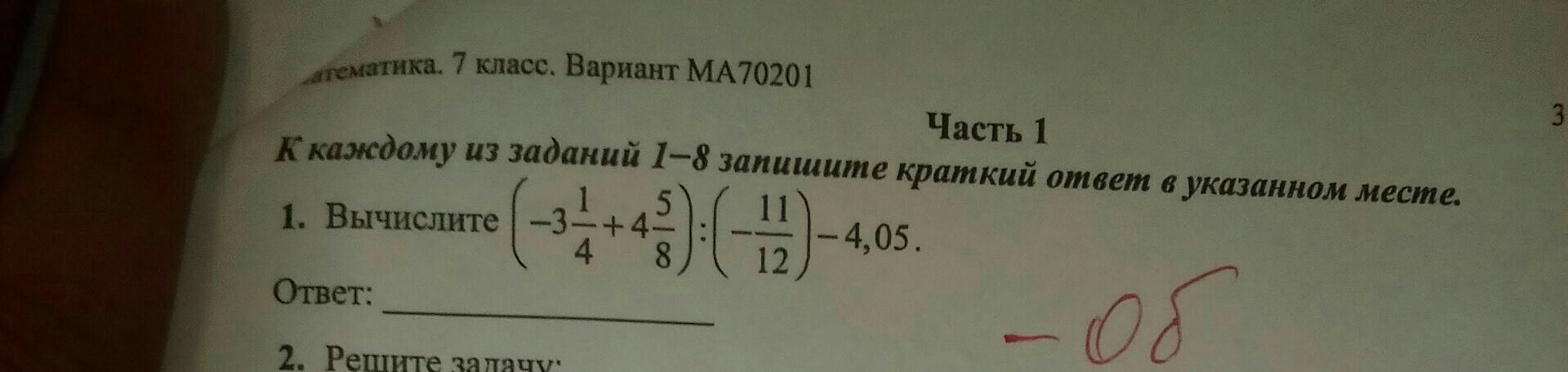 Решите пожалуйста пример я не могу ответ не получается